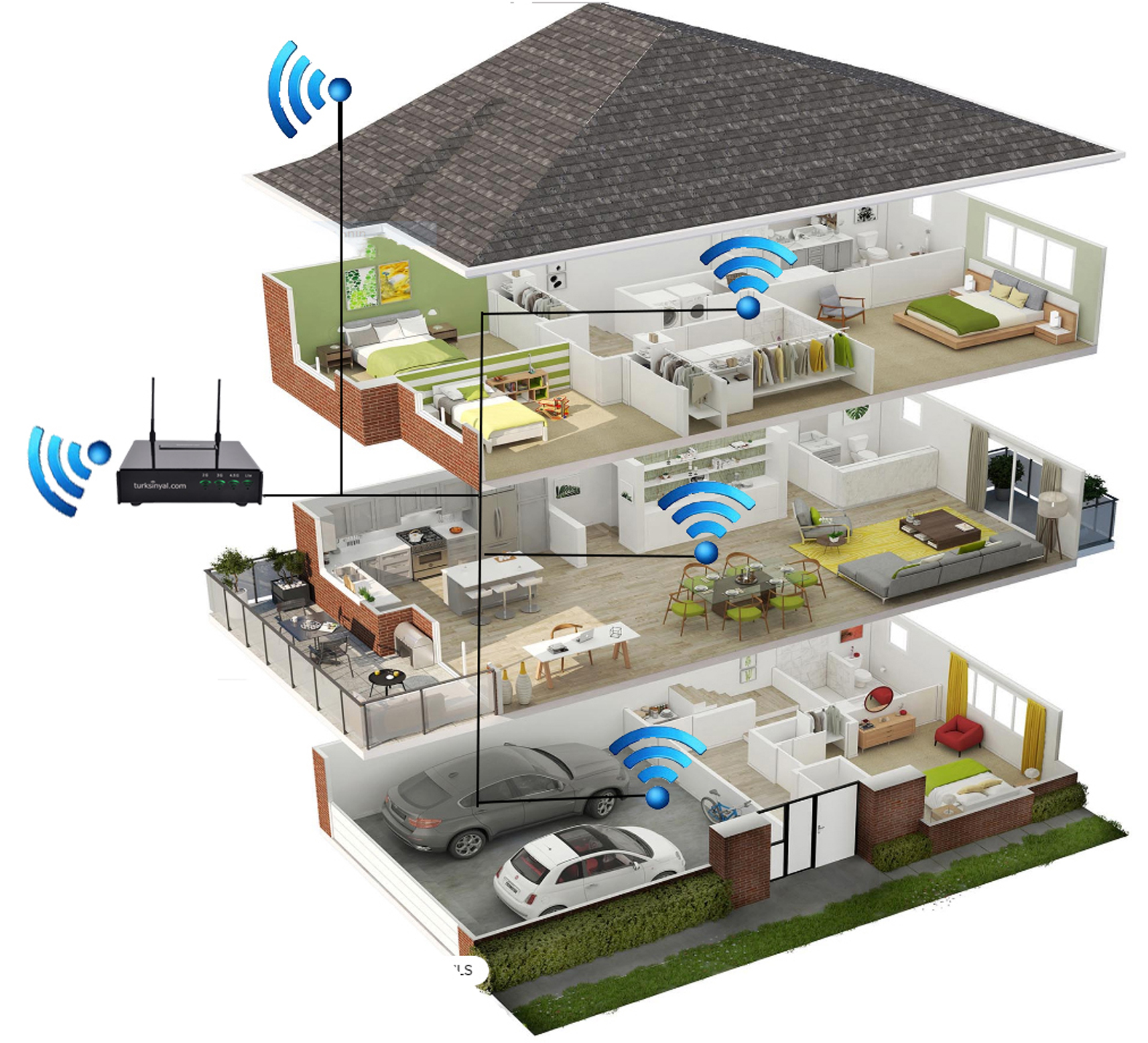 İç antenler sayesinde çekmeyen geniş bölgelerde cihaz ile bağlantısı kurulup daha geniş bölgelere dağıtımı sağlanabilir.